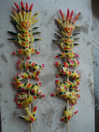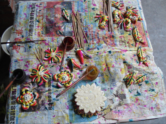 面塑主要用于歲時節(jié)令、生日、滿月、祝壽、喪葬祭祀等民間節(jié)慶或祭祀場合。漢濱區(qū)面塑的類別有四種。其一是生日滿月面塑。將面團(tuán)塑成象征吉祥的植物、動物及人物形象,如雙魚、項圈等寓意為平安健康、一帆風(fēng)順等。目前這種面塑多在農(nóng)村地區(qū)流傳。其二是祝壽面塑。面塑多為壽糕、壽桃造型,寓意健康長壽。目前此類面塑在漢濱區(qū)已不多見。其三是喪葬祭祀面塑。用塑、串、剪等各種手法蒸制成功,造型多為魚龍和花鳥魚蟲等,施以紅黃綠重彩點染,稱為“貢仙”,以示對亡靈的祭祀。這類面塑在漢濱流傳最為廣泛。其四是日常食用面塑。如油旋、麻花、點心等。