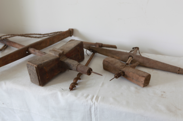 耙由兩根八尺左右、三寸見(jiàn)方的條木、上安耙齒,和兩根檔頭及兩根橫擔(dān)用卯連接而成。兩根長(zhǎng)的方木又稱(chēng)為耙庭,有單排耙齒和雙排耙齒兩種。耙,靠畜力拉動(dòng),人立耙上,以增加重量,一手拉緊韁繩,另一只手持一把鋤頭勾住耙身,拐彎調(diào)頭時(shí),全憑人力拖拽。