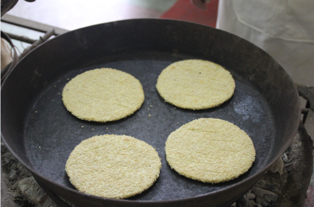 炕炕饃,又叫烙芝麻餅,是漢陰民間的一種傳統(tǒng)手工藝食品,是北方面食“馕”和“石子饃”等制作技藝傳到秦嶺南麓,與當?shù)仫嬍澄幕嘟Y(jié)合而產(chǎn)生的一種新型食物,是南北飲食文化交融的產(chǎn)物。