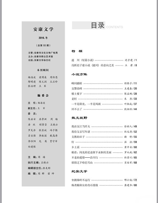 《安康文學(xué)》冬刊目錄1