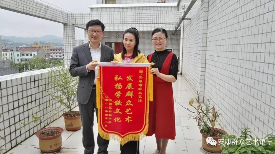4月26日下午,漢濱初中副校長馬曉寧、團(tuán)委書記史璇為安康市群眾藝術(shù)館送去了寫有“弘揚學(xué)校文化、發(fā)展群眾藝術(shù)”的錦旗,感謝市群藝館對漢濱初中的藝術(shù)幫扶。