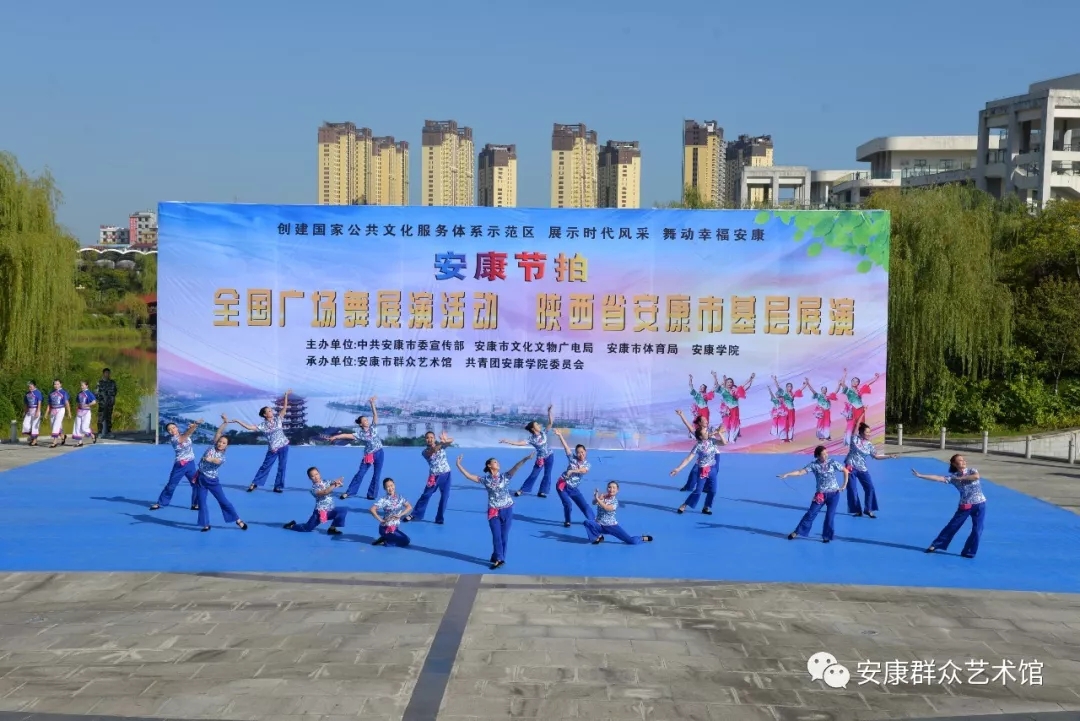 9月29日下午,由中共安康市委宣傳部、安康市文廣局、安康市體育局、安康學(xué)院主辦,安康市群眾藝術(shù)館、共青團(tuán)安康學(xué)院委員會(huì)承辦的“安康節(jié)拍”群眾廣場(chǎng)舞展演活動(dòng)在安康學(xué)院江北校區(qū)濱湖廣場(chǎng)舉行。安康市文廣局黨組書(shū)記、局長(zhǎng)楊海波,安康市文廣局黨組成員、副局長(zhǎng)王軍,安康學(xué)院團(tuán)委書(shū)記李光梓,安康市群藝館黨支部書(shū)記、館長(zhǎng)周墻等領(lǐng)導(dǎo)參加展演活動(dòng)。
