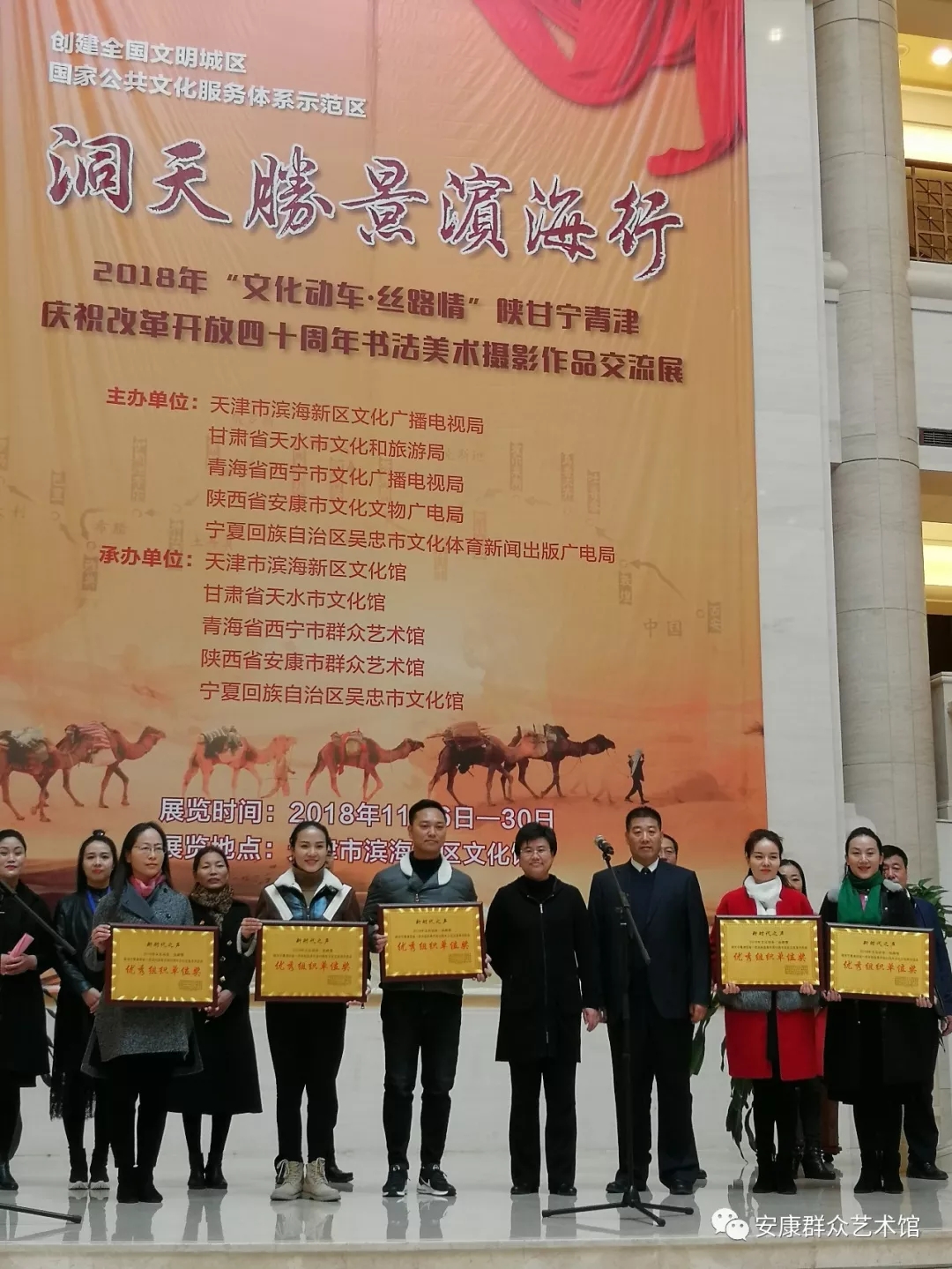11月6日,由陜西省安康市文化文物廣電局、甘肅省天水市文化和旅游局、寧夏回族自治區(qū)吳忠市文化體育新聞出版廣電局、青海省西寧市文化廣播電視局、天津市濱海新區(qū)文化廣播電視局聯(lián)合主辦的2018年“文化動車·絲路情”陜甘寧青津慶祝改革開放四十周年館際文化交流活動在濱海新區(qū)文化館拉開帷幕。