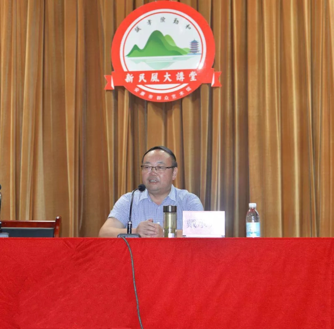 6月15日下午,安康市群眾藝術(shù)館首期“新民風(fēng)大講堂”順利舉行。館長周墻擔(dān)任主持,安康學(xué)院文學(xué)與傳媒學(xué)院院長、碩士生導(dǎo)師戴承元教授擔(dān)任主講,漢濱區(qū)老城街道辦事處人大工委主任楊樸、紀(jì)工委書記黨慧峰、副主任楊家成、五星社區(qū)黨支部書記馬光琴、市群藝館黨支部書記程賢芬以及來自文藝社團(tuán)和老城街道辦事處轄區(qū)的四百多名干部群眾聆聽了講座。