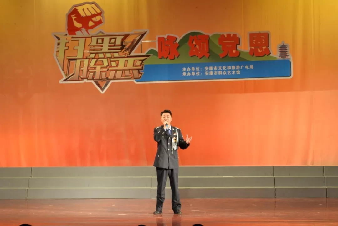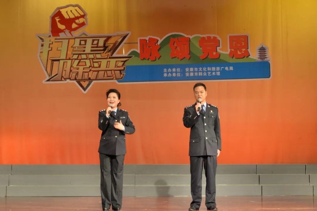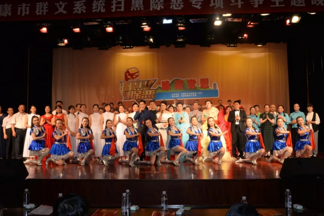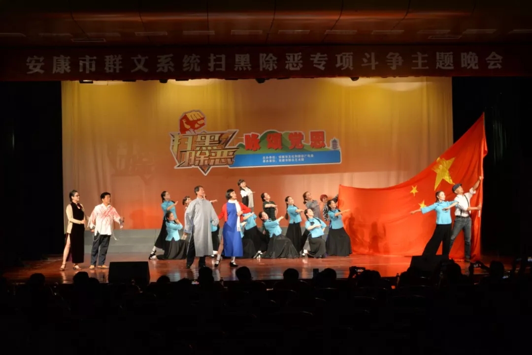 2019年6月25日晚上19:30,由安康市文化和旅游廣電局主辦,安康市群眾藝術(shù)館承辦,安康市曲藝家協(xié)會、安康南楓民間歌舞團、安康博閱學(xué)社、安康水電總廠“舞之戀”藝術(shù)團等單位協(xié)辦的市直群文系統(tǒng)“掃黑除惡專項斗爭”主題晚會又在安康市群眾藝術(shù)館劇場隆重上演,這也是安康中心城區(qū)2019年第一場以“掃黑除惡”為主題的專題晚會。安康市文化和旅游廣電局黨組書記、局長楊海波,安康市紀(jì)委常委、安康市監(jiān)委委員、市委巡查組組長方賢超,安康市委政法委副書記、市掃黑辦副主任朱定新,安康市法學(xué)會專職副會長、市掃黑辦副主任謝賢梅,市掃黑辦副主任曹修斌;安康市文化和旅游廣電局副局長王軍,安康市文化和旅游廣電局副局長劉璇,安康市群眾藝術(shù)館館長周墻等相關(guān)部門領(lǐng)導(dǎo)出席晚會并和數(shù)百位社會各界群眾一起觀看了演出。
