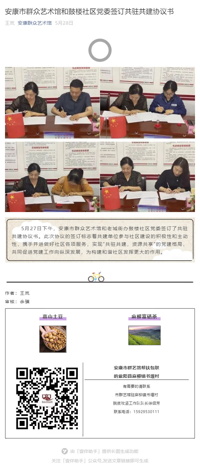 安康市群眾藝術館和鼓樓社區(qū)黨委簽訂共駐共建協議書