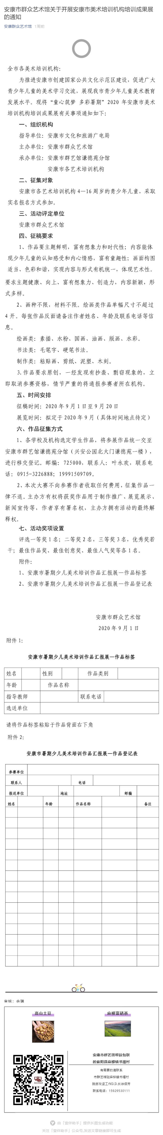 安康市群眾藝術(shù)館關(guān)于開展安康市美術(shù)培訓(xùn)機(jī)構(gòu)培訓(xùn)成果展的通知