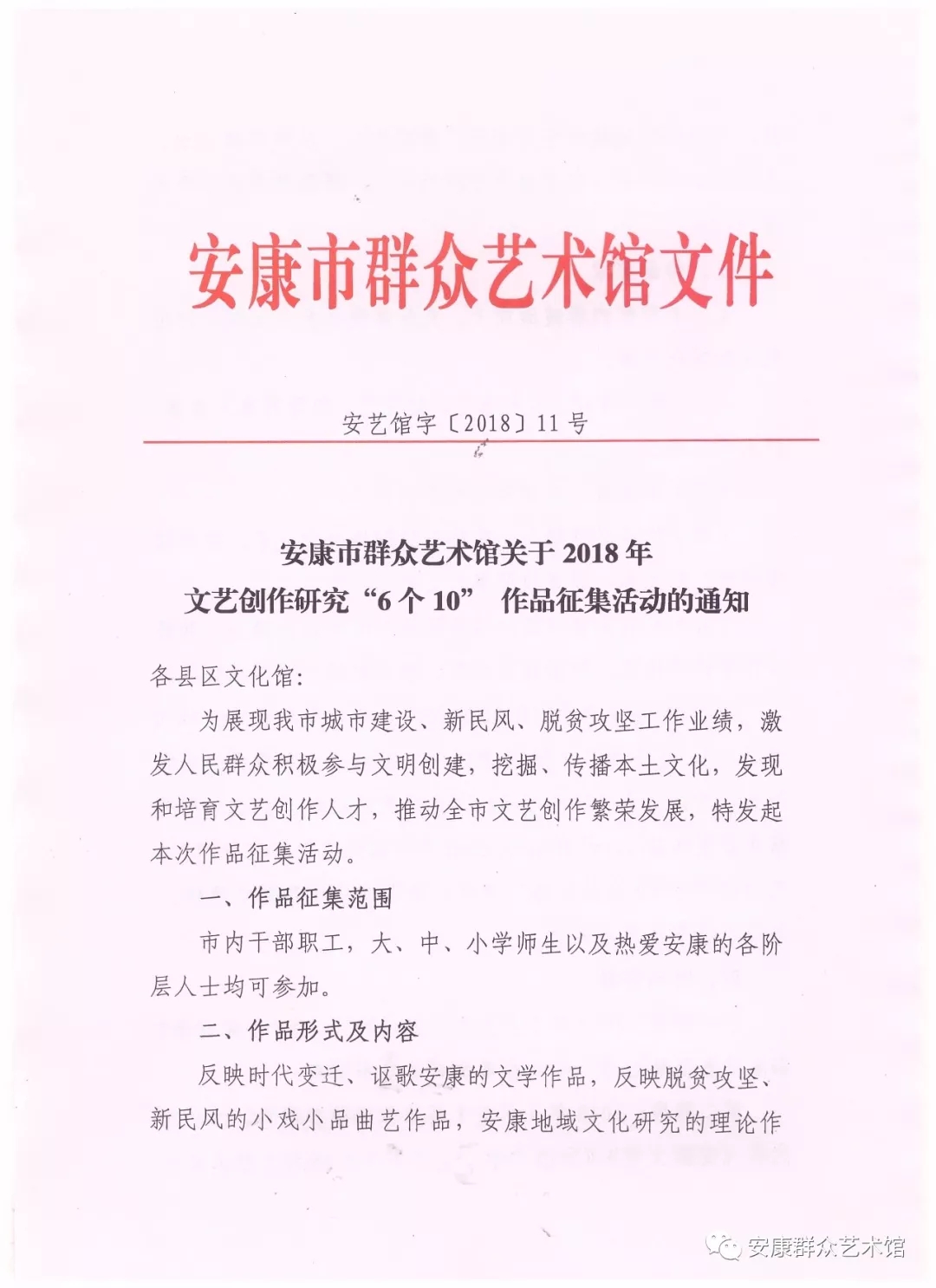 安康市群眾藝術(shù)館2018年文藝創(chuàng)作研究“6個(gè)10” 作品征集活動(dòng)的通知