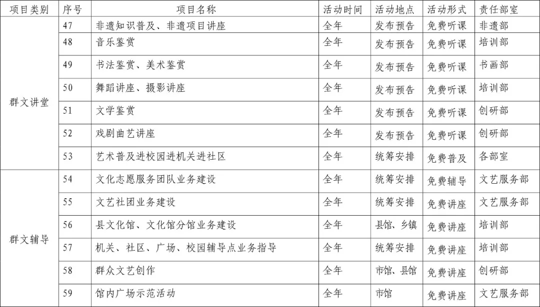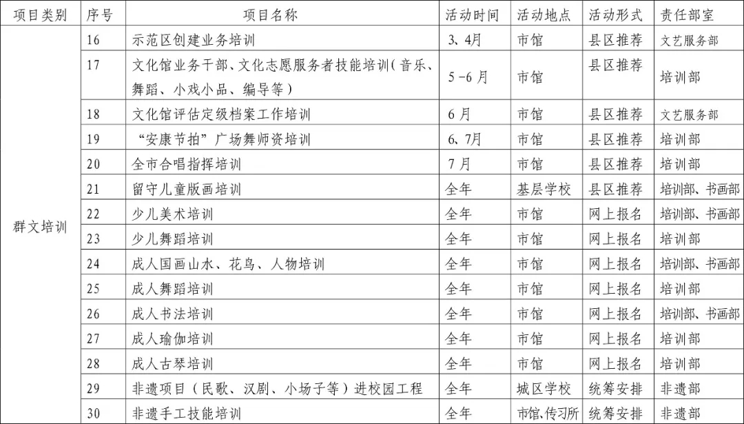 2019年安康市群藝館免費(fèi)開放基本文化服務(wù)項目一覽表