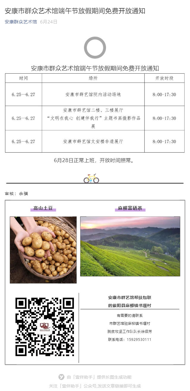 安康市群眾藝術館端午節(jié)放假期間免費開放通知