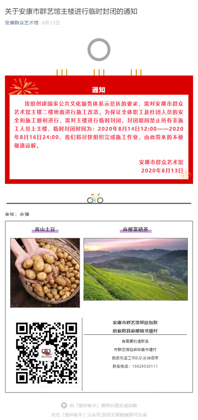 關(guān)于安康市群藝館主樓進(jìn)行臨時(shí)封閉的通知
