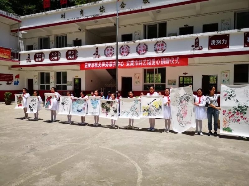 在第六十九個國際兒童節(jié)來臨之際,安康市群眾藝術館駐紫陽縣麻柳鎮(zhèn)書堰村扶貧工作隊積極溝通銜接,于5月22日,在麻柳鎮(zhèn)書院小學成功舉辦安康市機關事務服務中心、安康市群眾藝術館愛心捐贈活動,將一批國畫作品、兒童玩具、兒童文學書籍、新民風建設書刊、書包和學習用品,捐贈給紫陽縣麻柳鎮(zhèn)書院小學,用于學校文化建設。安康市機關事務服務中心副主任何慧紅、安康市群眾藝術館館長周墻、麻柳鎮(zhèn)黨委書記喻明星、麻柳鎮(zhèn)紀委書記肖杰等領導參加活動。