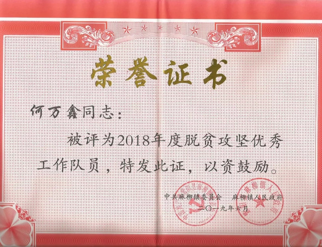 在全國(guó)上下共同慶祝中國(guó)共產(chǎn)黨98歲生日之際,紫陽(yáng)縣麻柳鎮(zhèn)評(píng)選表彰了一批在精準(zhǔn)扶貧工作中成績(jī)突出的基層黨組織和先進(jìn)個(gè)人。安康市群眾藝術(shù)館扶貧駐村工作隊(duì)第一書(shū)記何萬(wàn)鑫同志以其長(zhǎng)期扎根扶貧一線,克服困難,任勞任怨的踏實(shí)態(tài)度和顯著的工作業(yè)績(jī)被麻柳鎮(zhèn)評(píng)選為“優(yōu)秀駐村工作隊(duì)員”,受到表彰獎(jiǎng)勵(lì)。